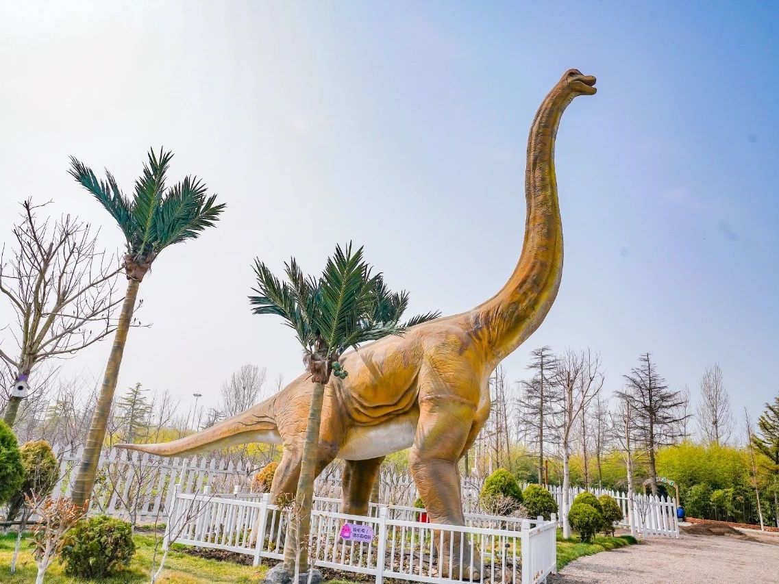 大洋藝術(shù)為園區(qū)定制了20余只1:1高度復(fù)原超仿真恐龍模型。