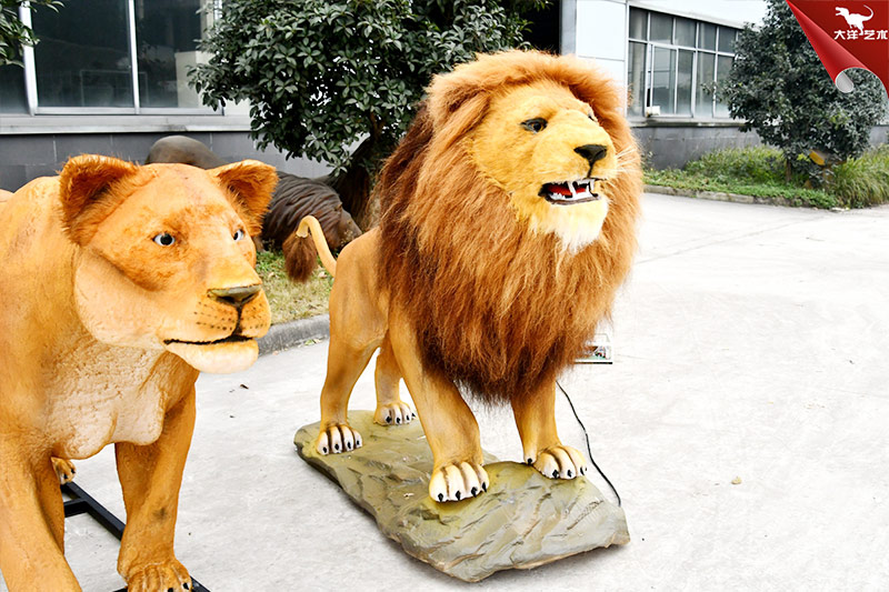 仿真獅子模型,一只公獅一只母獅,造型逼真,惟妙惟肖,仿真還原度高,能動會叫,主要用于景區(qū)、游樂場、動物園等場所!