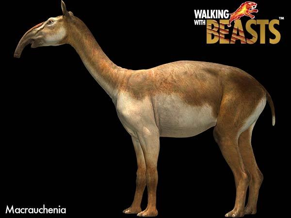 長頸駝(學(xué)名Macrauchenia patagonica),又名滑距獸,是一種長頸的南美洲的有蹄動物,屬于滑距骨目。它有長四肢,每肢上有三趾。最古老的化石可追溯至約7百萬年前,而在約1萬年前的更新世晚期便失去了化石紀(jì)錄。長頸駝是后弓獸科中最著名的成員,只有在南美洲(主要是阿根廷)有發(fā)現(xiàn)其化石。原標(biāo)本是由查爾斯·達(dá)爾文(Charles Darwin)在小獵犬號之旅中發(fā)現(xiàn)。長頸駝的外觀就像沒有駝峰及有一個短象鼻的駱駝,但它們與駱駝或長鼻目沒有親密的關(guān)系。