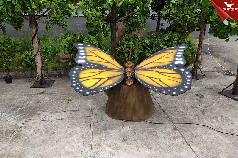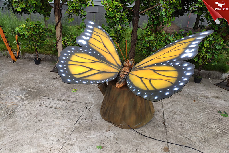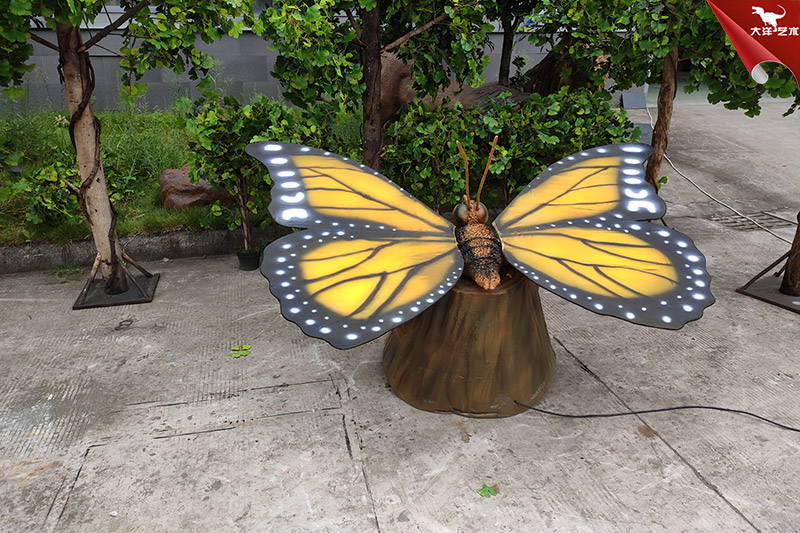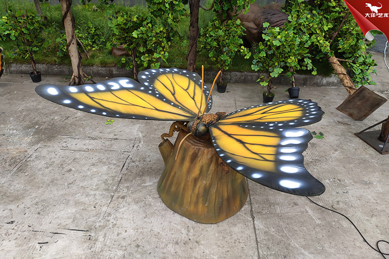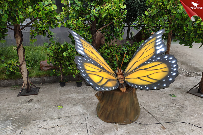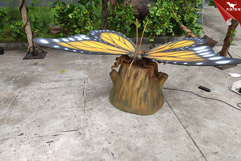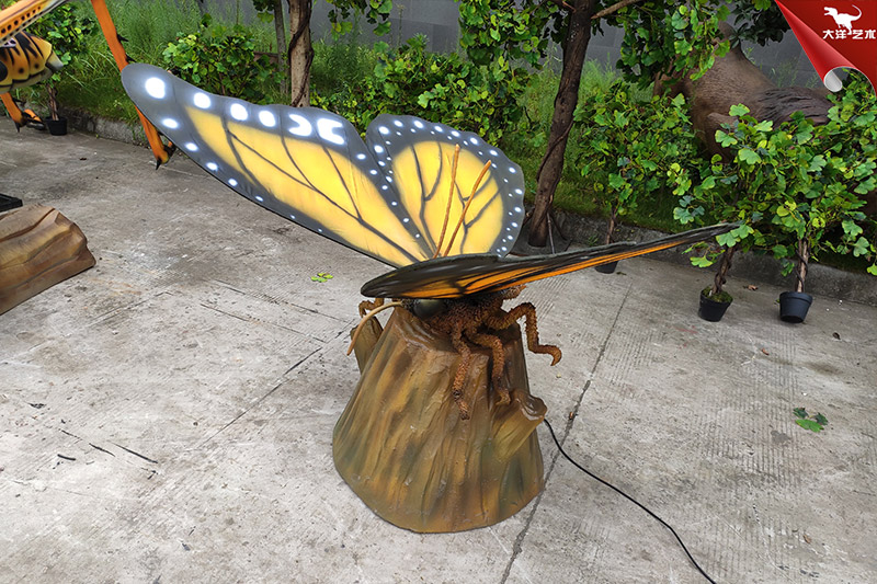 仿真蝴蝶是自貢大洋藝術(shù)有限責(zé)任公司-仿真恐龍制作工廠(chǎng)生產(chǎn)制作的。改仿真展品寬2米高1米左右,采用仿真恐龍技術(shù)制作,側(cè)才鮮艷、整體形象逼真。配合翅膀扇動(dòng)可發(fā)出蝴蝶飛翔的聲音。該展品主要用于動(dòng)物主題公園、商業(yè)活動(dòng)展覽、游樂(lè)場(chǎng)等場(chǎng)所!
