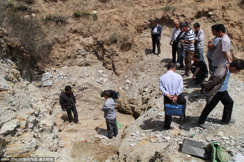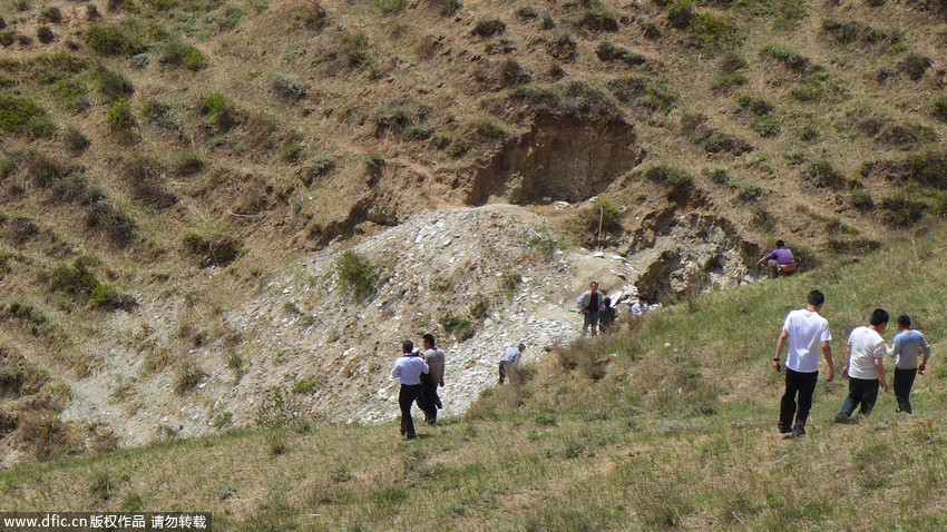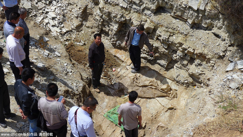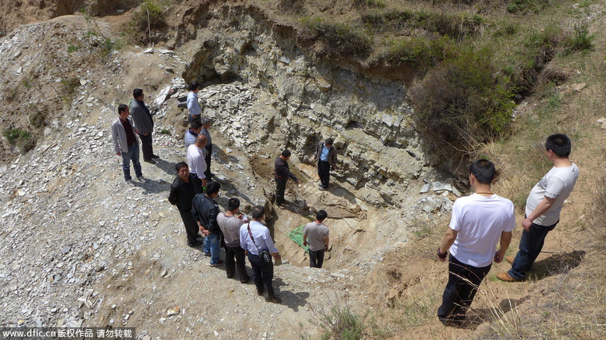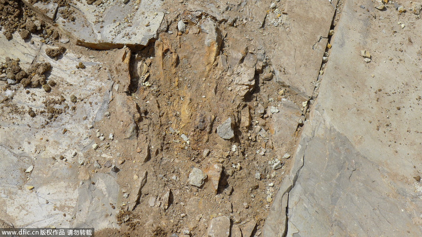 圖為“恐龍化石”發(fā)現(xiàn)現(xiàn)場。 王月 攝