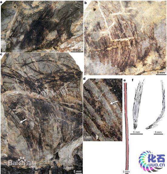 羽毛的起源和早期演化一直是學(xué)術(shù)界懸而未決的謎團(tuán)之一。近年來(lái),科學(xué)家從古生物學(xué)、胚胎發(fā)育學(xué),分子生物學(xué)等不同角度對(duì)這一問(wèn)題進(jìn)行了廣泛研究。對(duì)羽毛的現(xiàn)代生物學(xué)研究推測(cè),最早的羽毛應(yīng)當(dāng)是較長(zhǎng)的、管狀的、未分叉的絲狀結(jié)構(gòu),但苦于化石記錄中沒有明確的對(duì)應(yīng)物。