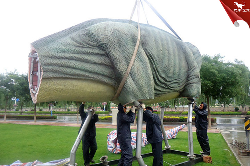 工人師傅現(xiàn)場為客戶安裝仿真腕龍