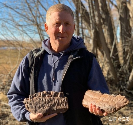 圖注:約翰·德格魯特與他發(fā)現(xiàn)的化石,圖片來自網(wǎng)絡