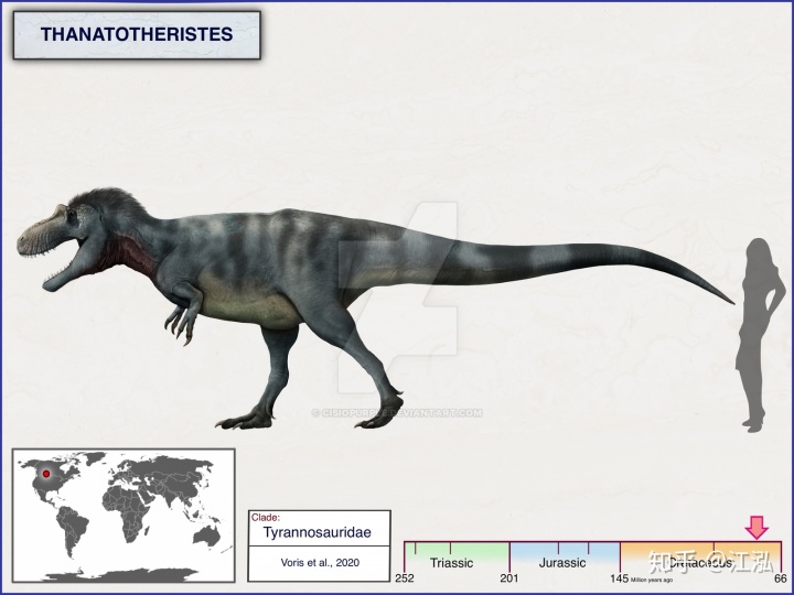 經(jīng)過了兩年的研究,沃里斯發(fā)現(xiàn)這真的是一個全新的物種!這令加拿大的古生物學家們都激動不已,因為這是50年來加拿大發(fā)現(xiàn)的第一種新暴龍科恐龍,也是加拿大發(fā)現(xiàn)的第五種暴龍科(此前發(fā)現(xiàn)了霸王龍,懼龍,艾伯塔龍和蛇發(fā)女怪龍)。“世界上很少能有國家一次性擁有五種暴龍科,這足夠讓我們吹好一陣子了!”皇家泰勒爾古生物學博物館的恐龍古生態(tài)學館長弗朗索瓦·塞里恩(FrancoisTherrien)非常自豪的說到。