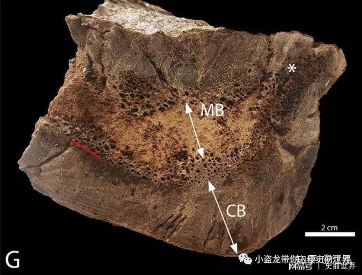 圖注:霸王龍股骨的切面,其中的MB指的就是髓質(zhì)骨,圖片來(lái)自網(wǎng)絡(luò)