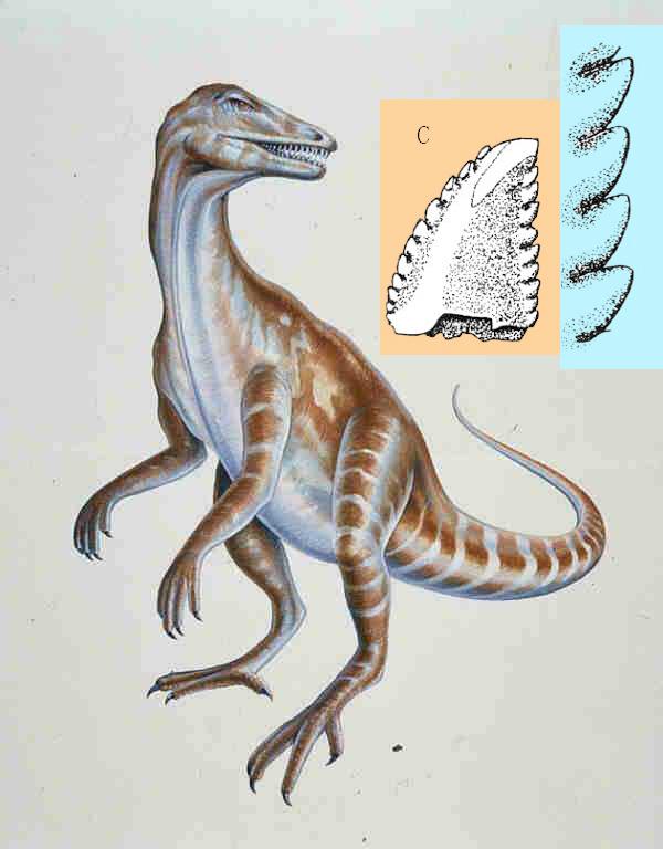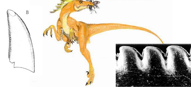 由于時代久遠,這些迷人的生物給我們留下的可供研究的痕跡并不多,保存完整的骨架就更是少之又少。而牙齒因為相對較小,質(zhì)地堅硬,表面還有釉質(zhì)保護,易于保存。所以牙齒化石就成為最常見的恐龍遺跡。隨著恐龍學家們對牙齒研究的深入,已能通過牙齒鑒別出恐龍的大致種類。1990年,加拿大艾伯塔省的Philip Currie 就利用牙齒鋸齒的形態(tài)特征的變化將當?shù)厣钤谕戆讏资?nbsp;(Late Cretaceous)的獸腳類的恐龍分為四大類:馳龍(Dromaeosaurinae):大名鼎鼎的恐爪龍就屬于這一類;伶盜龍(Velociraptorinae);傷齒龍(Toodontidae);暴龍(Tyrannosauridae).