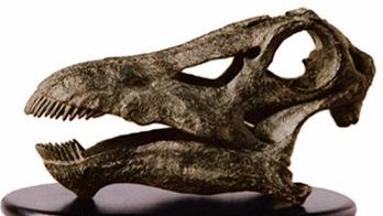 從這張霸王龍的頭部特寫中,我們可以看出:他的所有牙齒形狀相同,長短不一,排列并不緊密。這正是吃肉的獸腳類恐龍的典型特征。與哺乳動物相比,恐龍的牙齒為終生生長的同型齒。我們都很熟悉的門牙虎牙和磨牙,在恐龍還沒有分化,滿口的牙都長得一個樣子,叫同型齒。而后來的哺乳動物有門齒犬齒和臼齒,稱異型齒。我們的牙齒有兩套,幼時是無根的乳齒,后來被恒齒替代,而恒齒脫落后是不能再長出的。而在恐龍牙齒是終生生長的,不是像老鼠的門牙那樣不停的長,而是一直進行新舊更替,這就是為什么這張照片上的牙齒明顯大小不一,剛露頭的牙齒是正在長出。