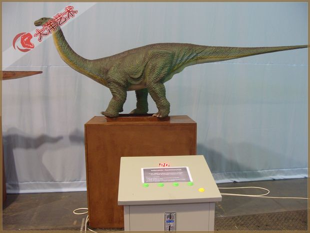 動 作:投幣后觀眾可操作鍵盤,指揮恐龍張嘴叫聲、頭左右、頸上下、前肢擺動、尾左右擺動.
