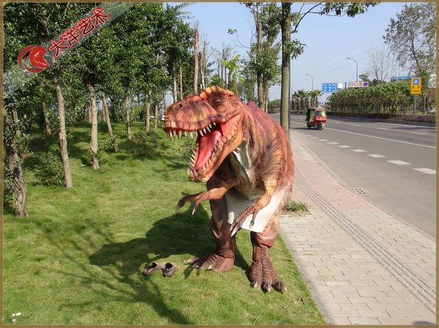 動(dòng) 作:人穿在恐龍身體里面,控制恐龍動(dòng)作。