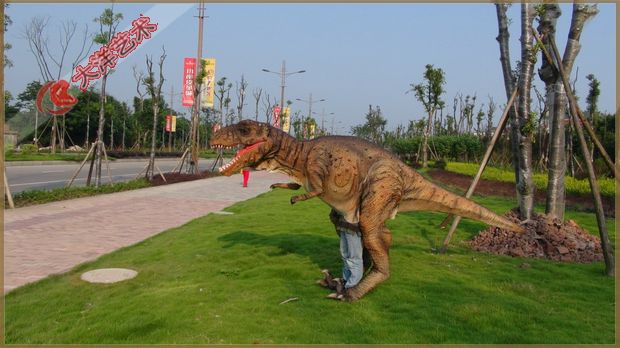 動(dòng) 作:人穿在恐龍身體里面,控制恐龍動(dòng)作