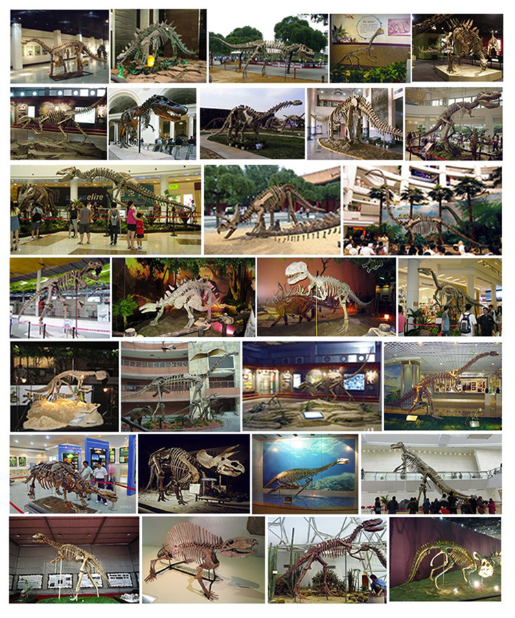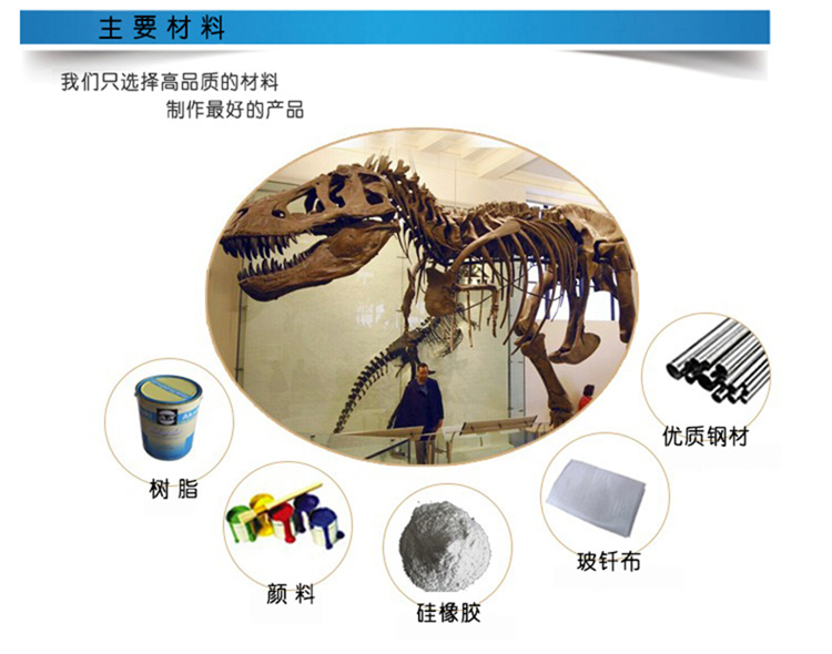 2. 仿真恐龍骨架標本模型展品我們采用優(yōu)質(zhì)金屬鋼材制作內(nèi)部支撐鋼架,在按照現(xiàn)代仿真學原理進行化石標本模具翻模制作,在進行表面肌理紋理和顏色處理。