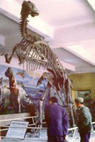 由于黑龍江水的長(zhǎng)期侵蝕,沿江兩岸的地層不斷地被剝蝕,里面埋藏的恐龍化石就不斷地被沖刷出來(lái),暴露在江邊的河灘上。當(dāng)?shù)氐臐O民發(fā)現(xiàn)了這些化石后非常驚奇,因?yàn)樗麄儚膩?lái)沒(méi)有見(jiàn)過(guò)這么粗大的動(dòng)物骨骼。消息不逕而走,被對(duì)岸的俄國(guó)軍官聽(tīng)到了,就前來(lái)調(diào)查并采集化石。最初,俄國(guó)人把這些大化石骨頭誤認(rèn)為是猛犸象,而且在俄國(guó)伯力地方報(bào)紙上作了報(bào)道。俄國(guó)地質(zhì)學(xué)家被這一報(bào)道所吸引,從1915年至1917年連續(xù)到我國(guó)進(jìn)行了三年的大規(guī)??疾旌桶l(fā)掘,采集到一批恐龍化石。他們把采到的化石進(jìn)行了修理,并配上三分之一的石膏模型,把這些化石裝架起來(lái),陳列到彼得堡地質(zhì)博物館里。研究認(rèn)定,這是一種鴨嘴龍,高4.5米,長(zhǎng)約8米,俄國(guó)地質(zhì)學(xué)家把它命名為滿洲龍。