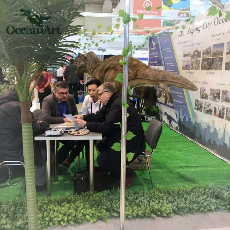 2019年3月13日~15日,我司亮相俄羅斯展會。在為期3天的展會中,公司各工作人員付出了辛勤的勞動,收獲頗豐。現(xiàn)場參觀人員絡繹不絕,看到栩栩如生的恐龍展品,他們紛紛驚嘆我司精湛的手藝,這引得不少外賓新老客戶駐足合影留念。通過與外賓客戶的交流與互動,我司產(chǎn)品質(zhì)量取得了外賓朋友的一致認可。在這場展會中,我司不僅向世界推廣了公司產(chǎn)品,更弘揚了中國博大精深的恐龍文化!